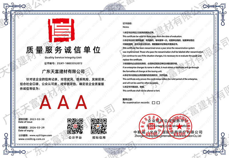 企業信用評價AAA級信用企業